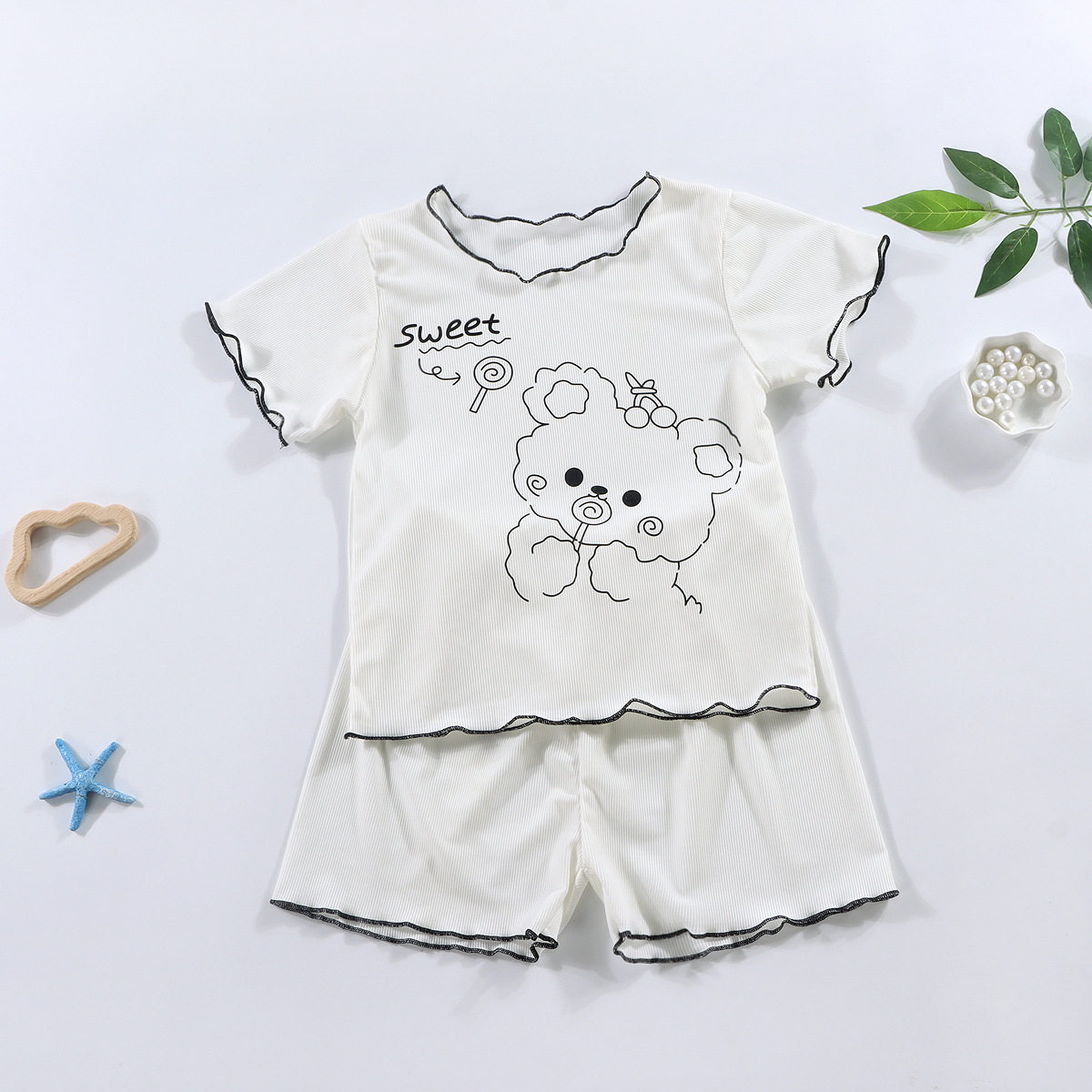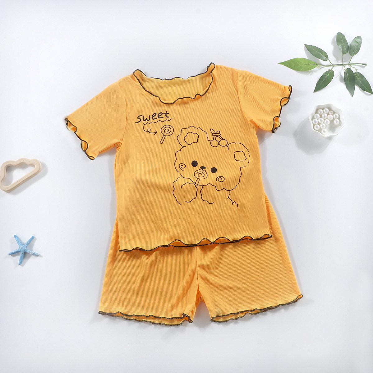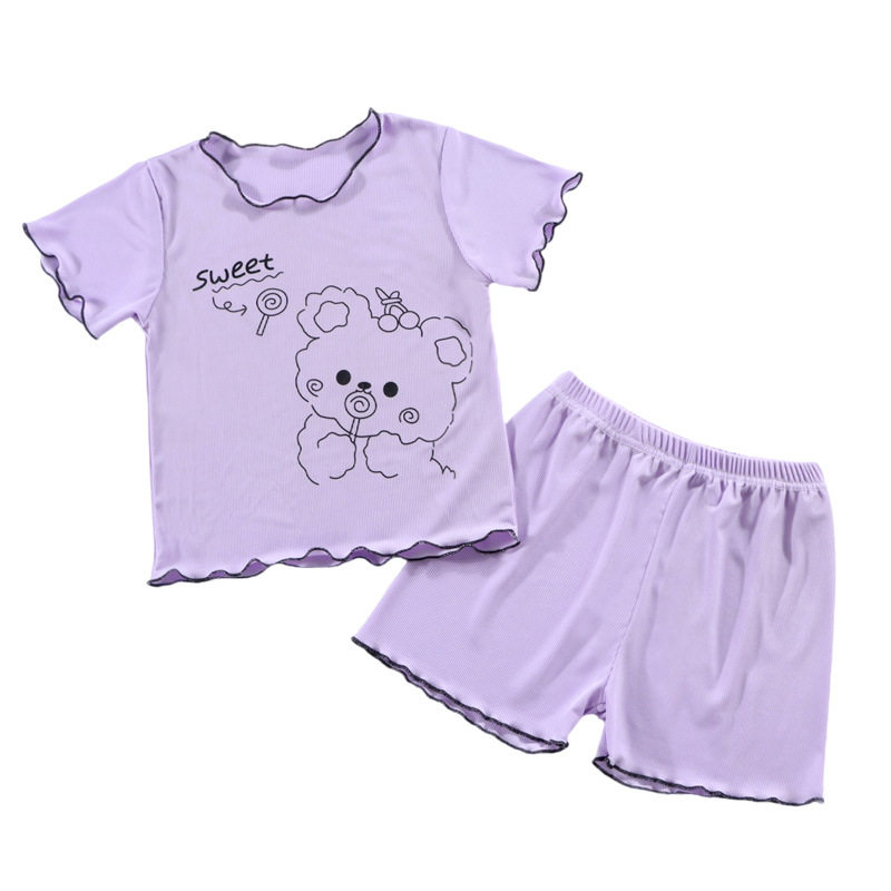 女童短袖 空调服两件套装 夏装 休闲冰丝洋气女孩儿童家居服宝宝 短裤由