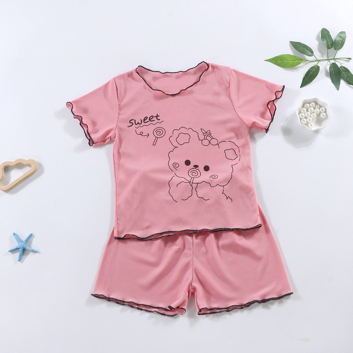 女童短袖 空调服两件套装 夏装 休闲冰丝洋气女孩儿童家居服宝宝 短裤