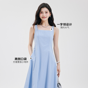 pusumede 设计感收腰显瘦气质长裙 黑色圆领针织背心连衣裙女夏季