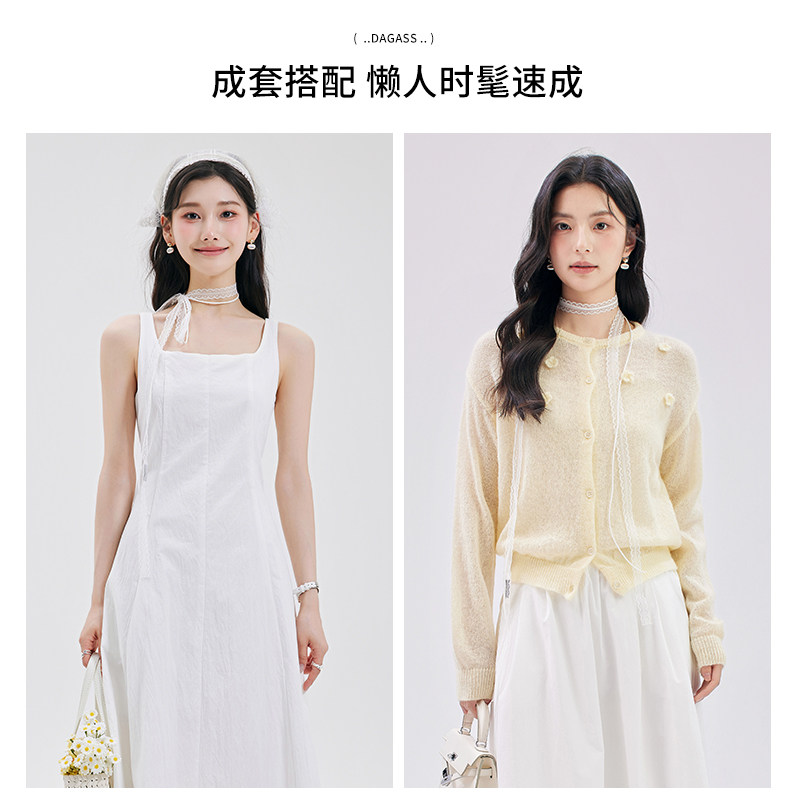 衣橱直播间 达佳诗方领吊带连衣裙 圆领针织开衫 所有女生由