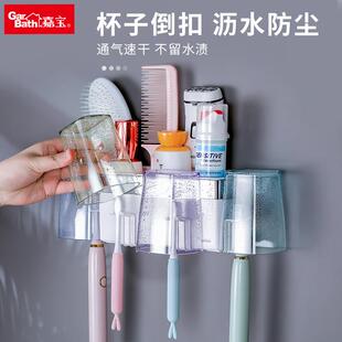 漱口牙刷杯套装 化妆室免打孔牙膏牙杯架壁挂式 牙刷置物架吸壁式由