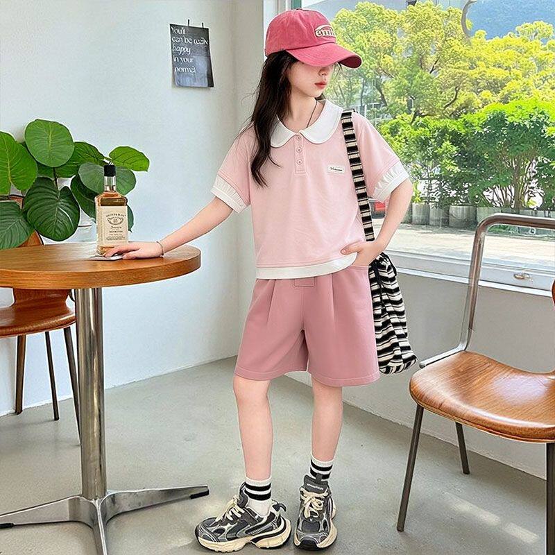 2026新款 夏季 套装 两件套 T恤韩版 女孩短裤 洋气儿童短袖 女童POLO衫