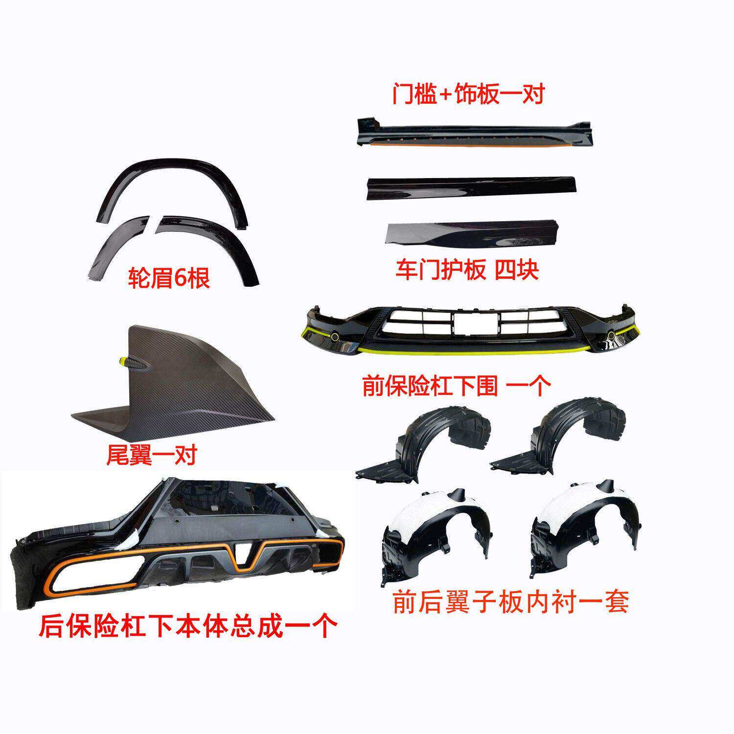 原装 配件 前保险杠下本体前铲尾翼护板包围改装 适配长安unit运动款由