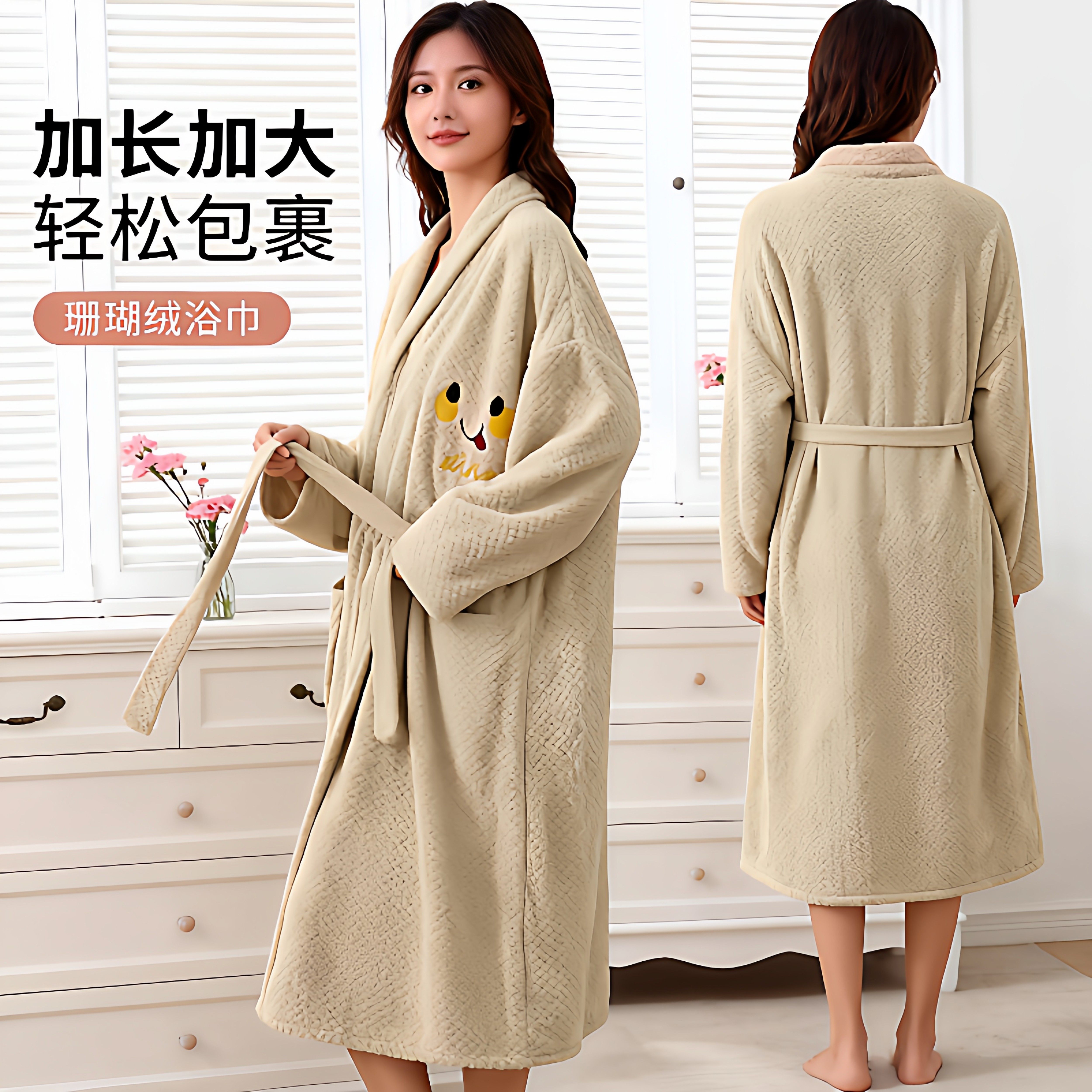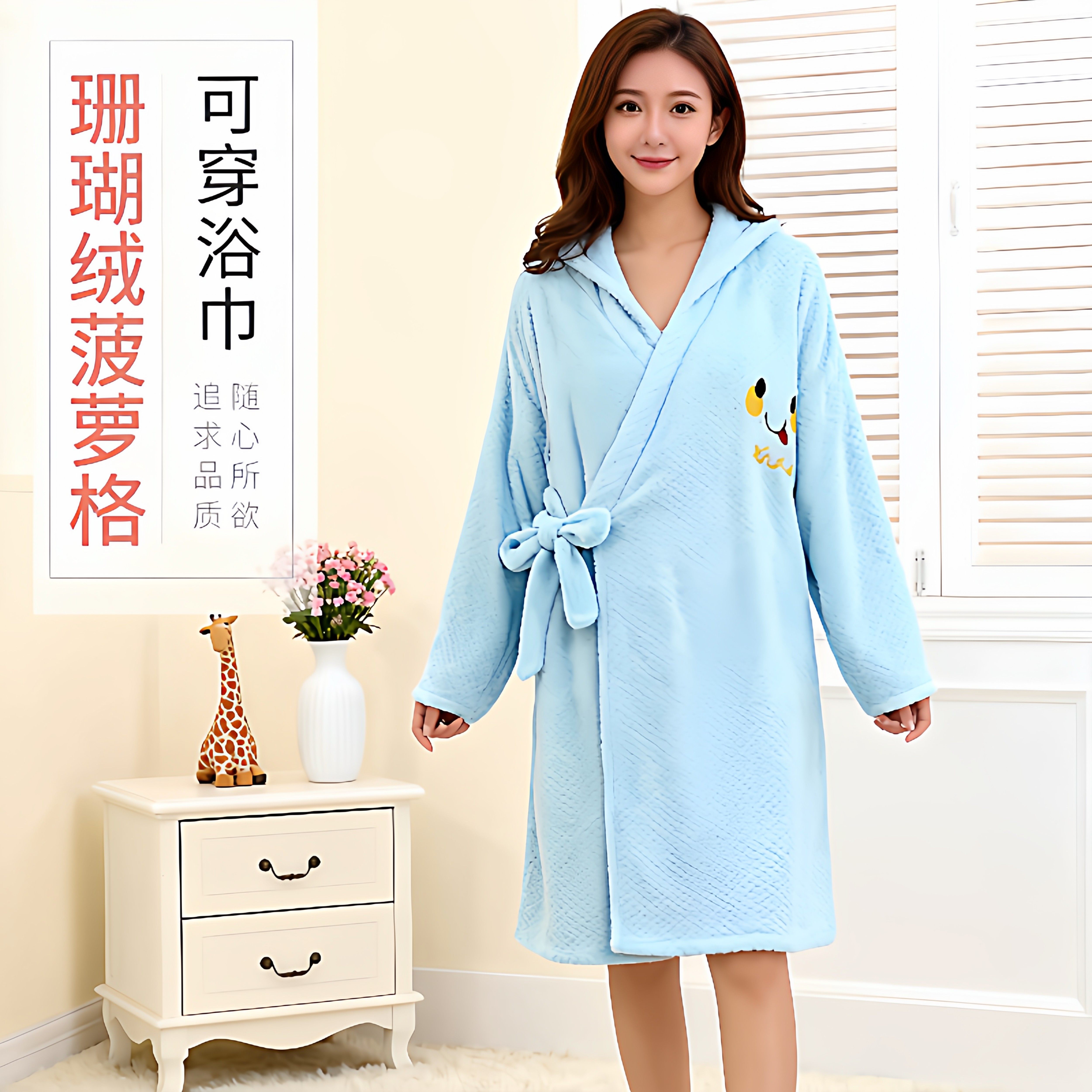 秋冬浴袍可穿浴巾女家用珊瑚绒吸水柔软速干浴裙洗澡睡袍睡衣连帽