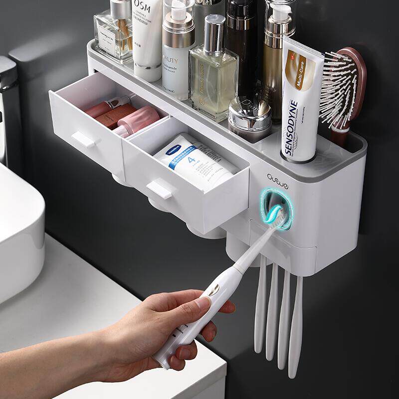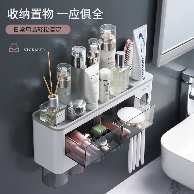 免打孔卫生间牙具座牙膏收纳浴室 牙刷牙杯壁挂置物架电动牙刷套装