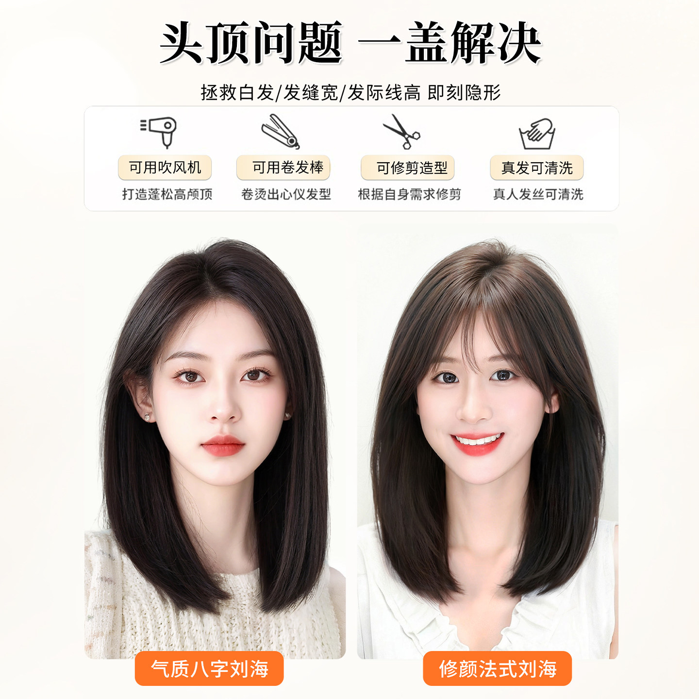 为您提供商品递针假发女片头顶蓬松高颅顶真发增发量遮白发自然隐形无边补发片的详细介绍,