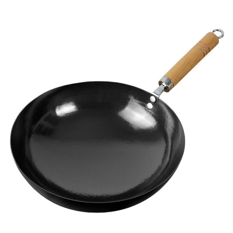 章丘木柄黑锅铁锅家用轻便炒锅 手打无涂层通用炒菜锅 不粘锅老式