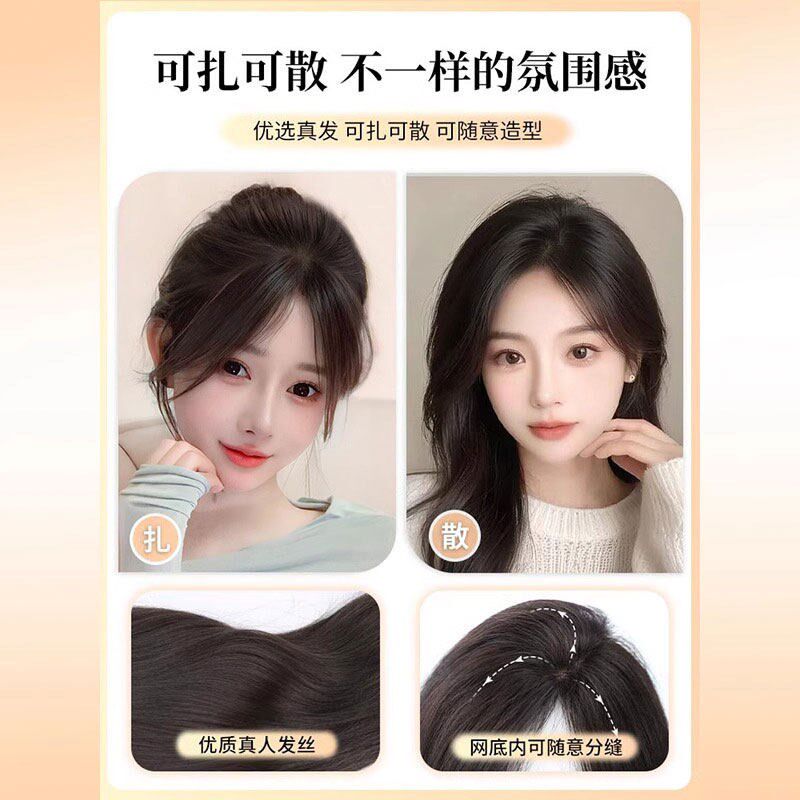 刘海片 高颅顶假发片女增发量蓬松真发遮头顶白发 双递针法式 美禾