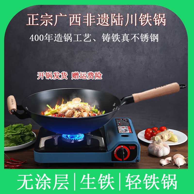 陆川铁锅无涂层正宗健康炒菜锅生铁铸双耳真不锈钢广西玉林非遗