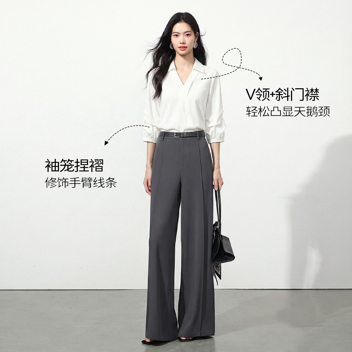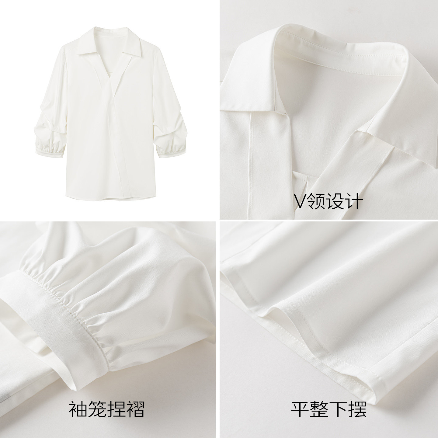 为您提供商品新款 轻奢减龄不对称上衣 女2026年夏装 衣香丽影白色复古感V领衬衫的详细介绍,