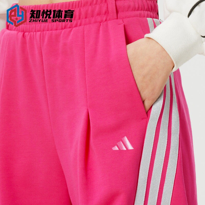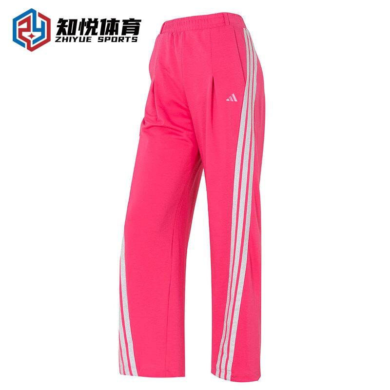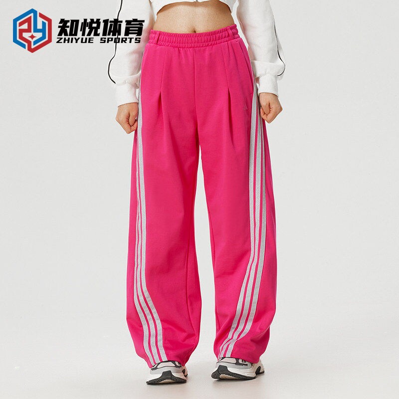 阿迪达斯三条杠运动长裤 KS0035 女玫红色宽松休闲运动风KS0036由