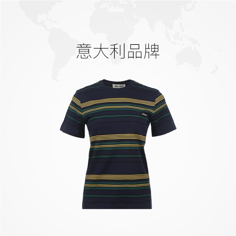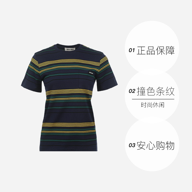 为您提供商品缪缪SS26女士撞色条纹设计棉质薄款 自营 miu T恤修身 短袖的详细介绍,