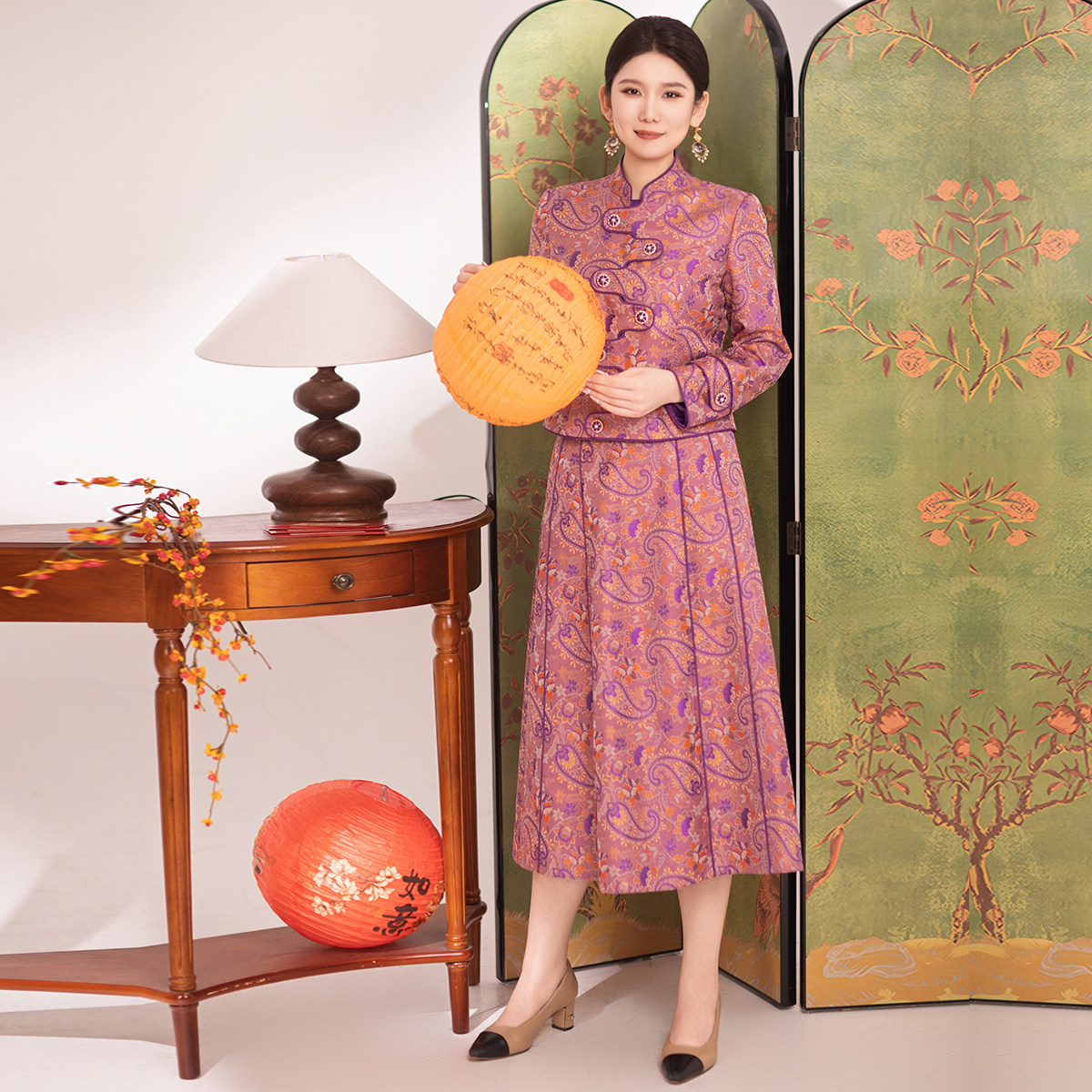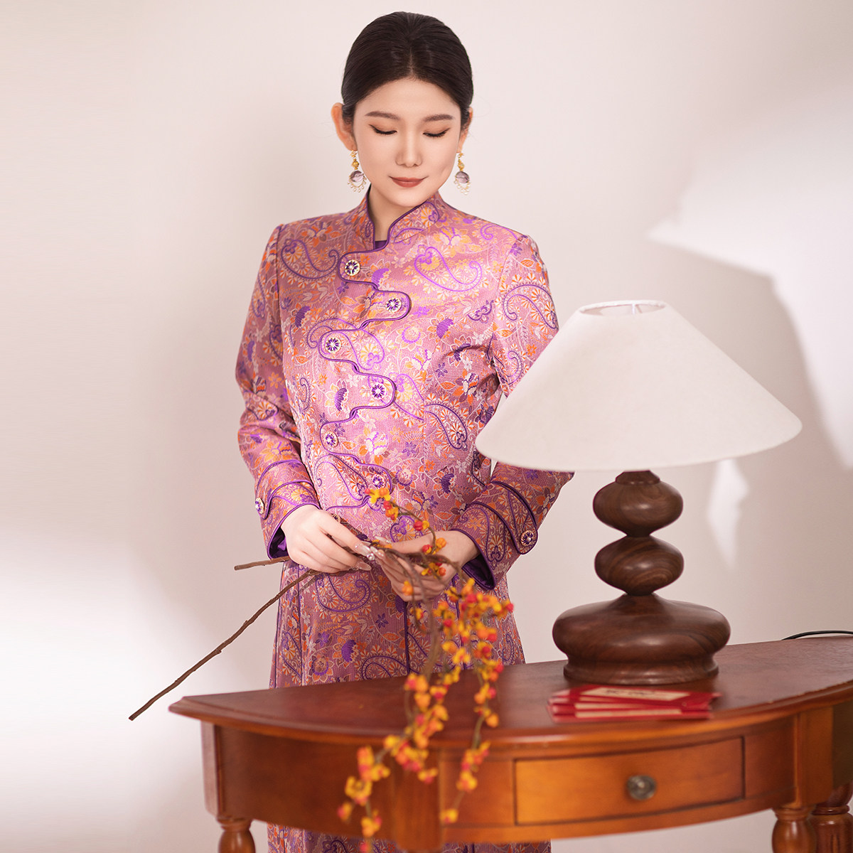 浒城古娘新款 新中式 国风蜀锦套装 女春秋 桑蚕丝高级感气质优雅长袖
