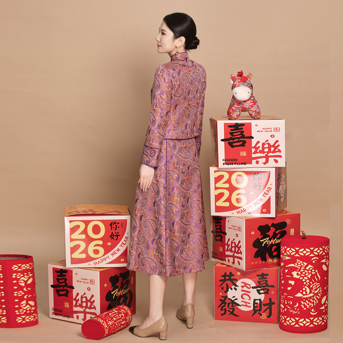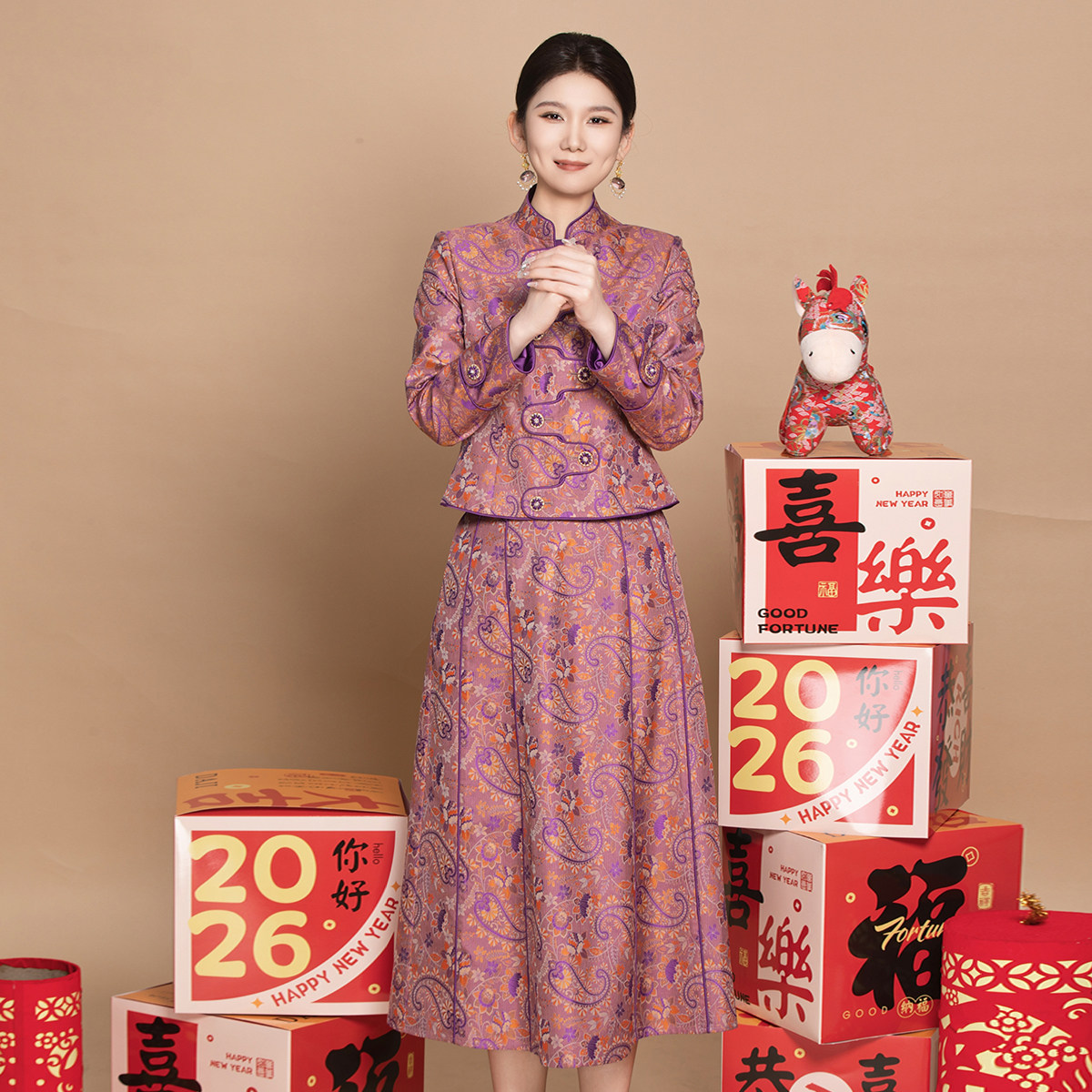 浒城古娘新款 新中式 国风蜀锦套装 女春秋 桑蚕丝高级感气质优雅长袖由