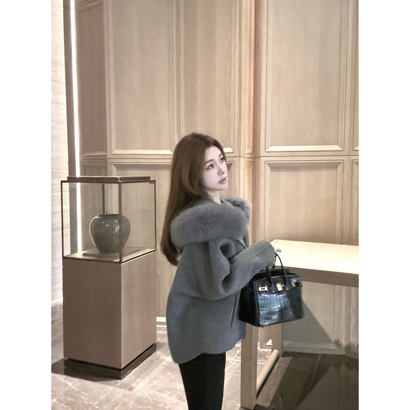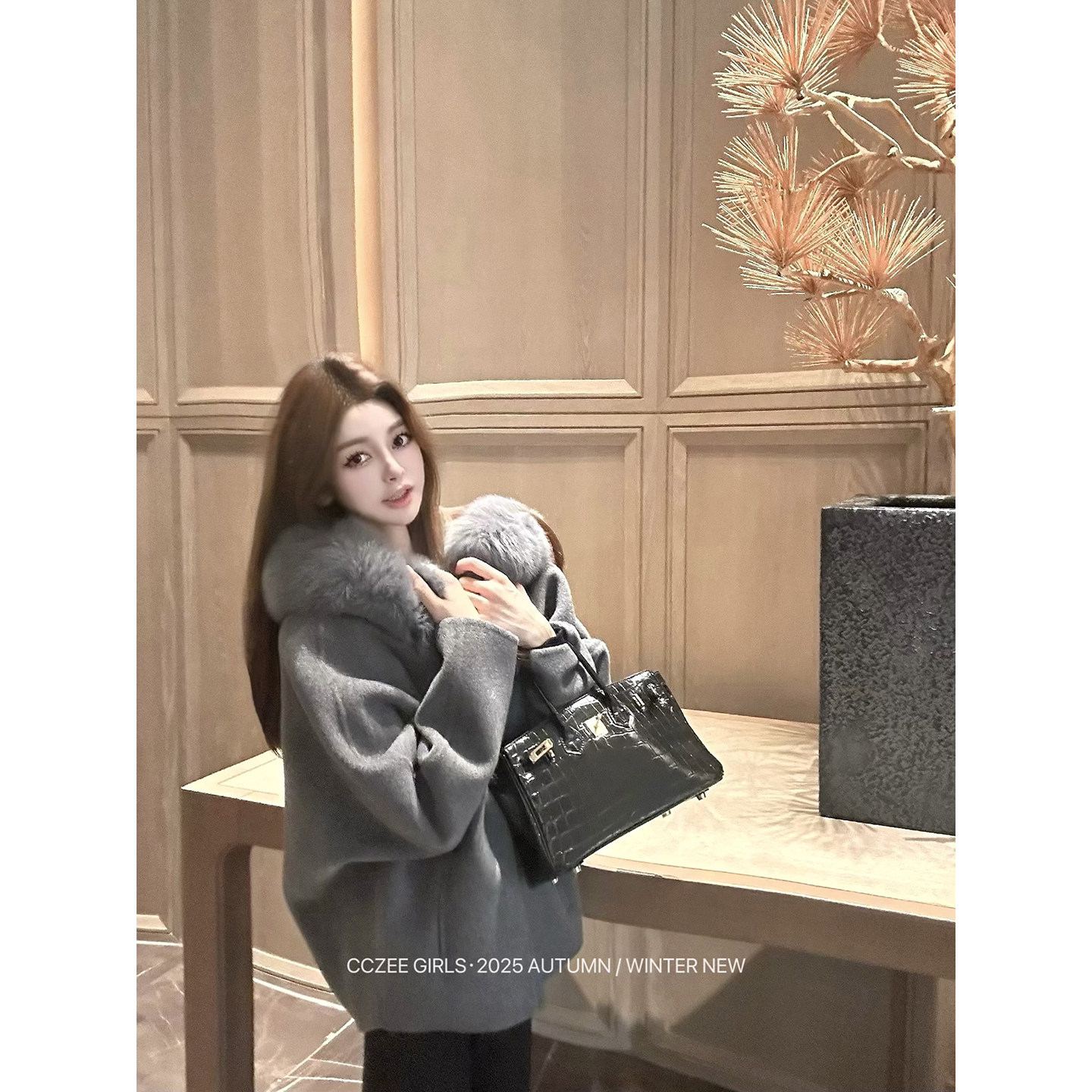 连帽狐狸毛双面呢大衣女冬季 宽松廓形外套 巴尔蒙特夜宴 CCZEE