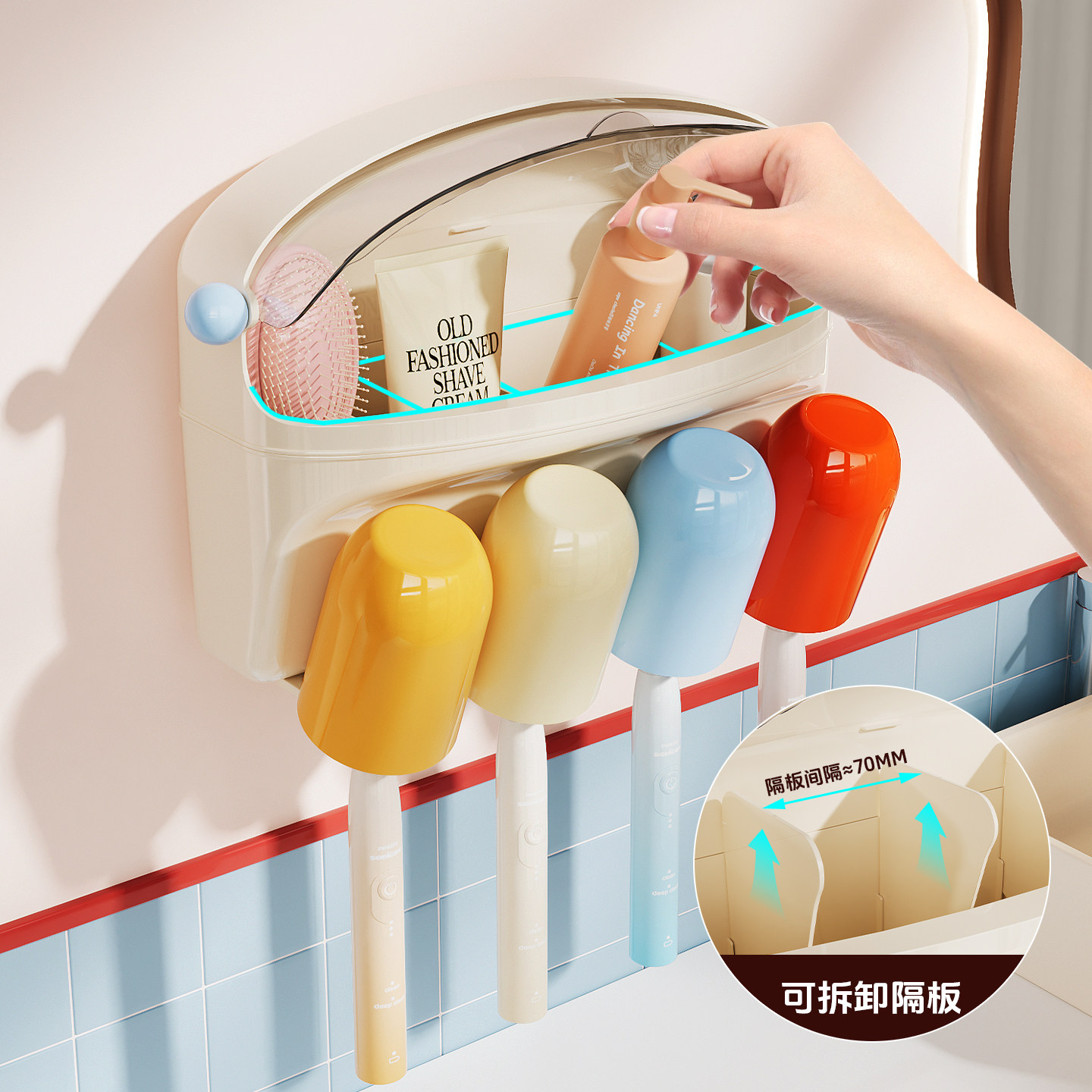 诺室防尘牙刷置物架壁挂式 免打孔牙膏电动刷牙杯牙缸洗漱口杯套装由