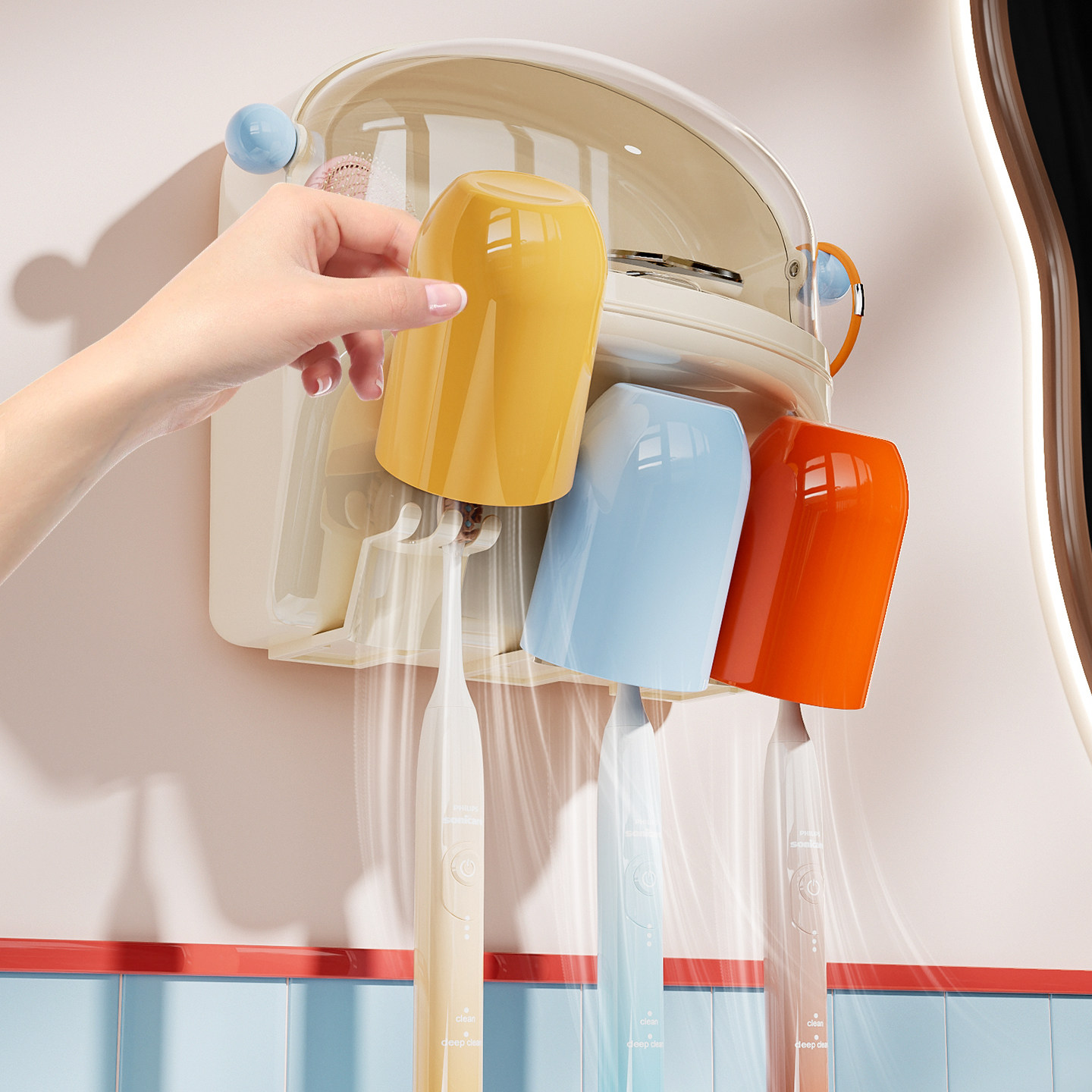 诺室防尘牙刷置物架壁挂式 免打孔牙膏电动刷牙杯牙缸洗漱口杯套装