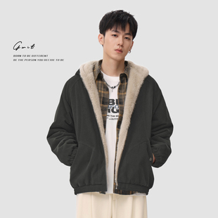 GWIT 保暖棉服座山雕加厚连帽外套男 美拉德Vintage加绒夹克冬季由