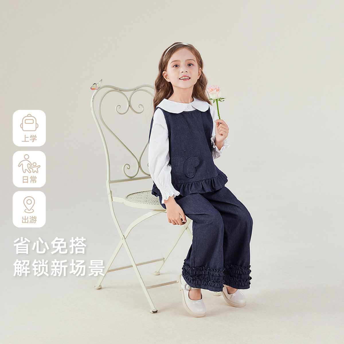 女童牛仔套装 宝宝春季 两件套儿童洋气时髦大童衣服女 抗菌防褪色
