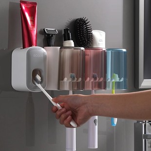 家庭电动牙膏牙刷泓纳 牙刷置物架免打孔漱口杯刷牙杯卫生间壁挂式