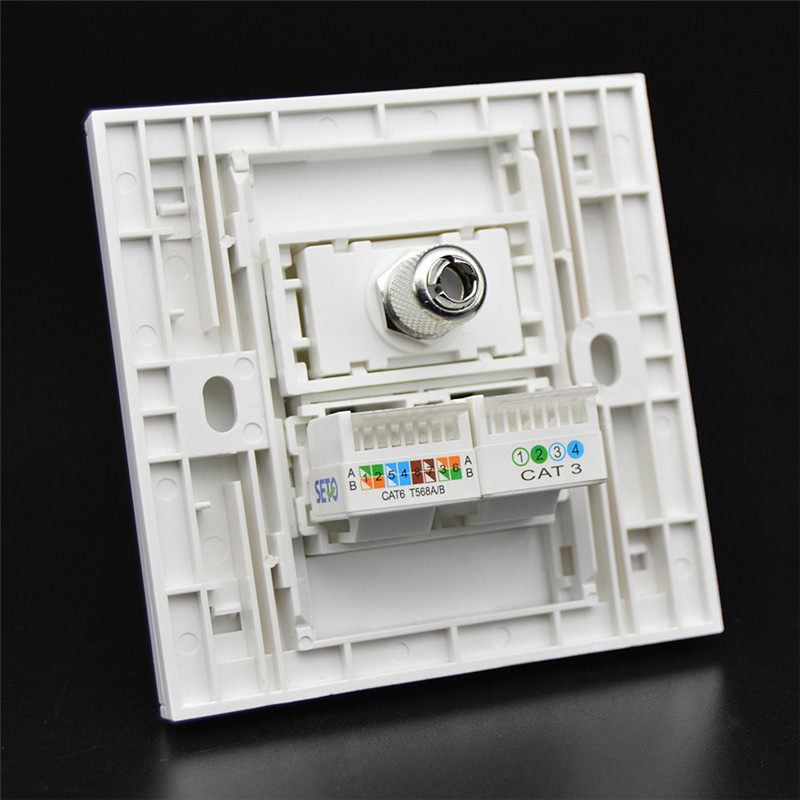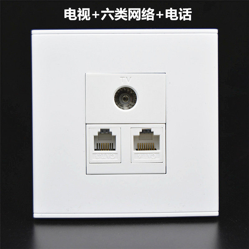 86型网络电话TV闭路墙壁插座免打六类千兆网线口语音有线电视面板