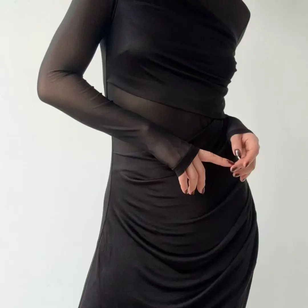 黑色吊带连衣裙女春夏外穿小个子网纱长裙内搭打底显瘦不规则裙子