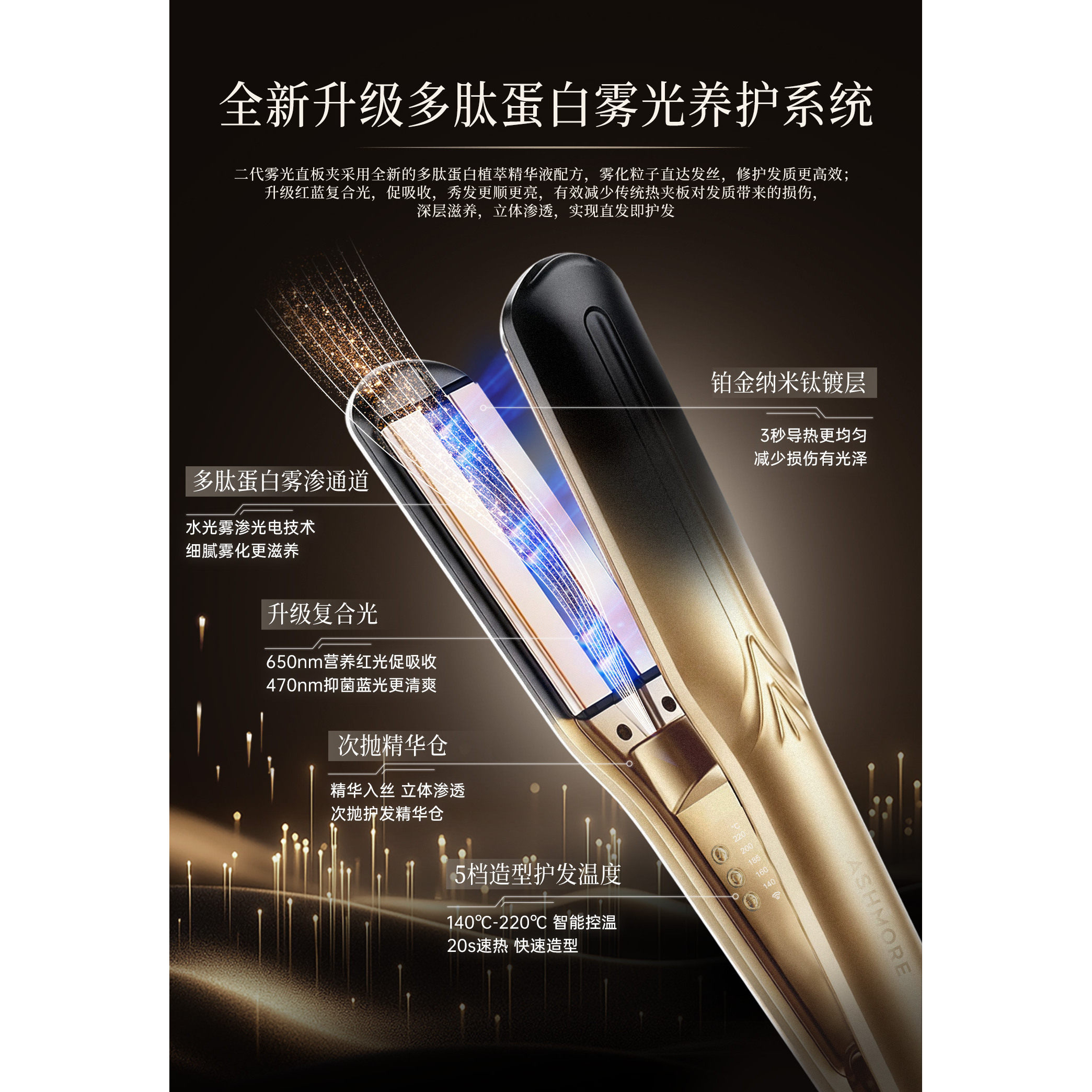 夹板全自动卷直两用红光卷发棒礼物 艾诗摩尔雾光直板夹二代曜金版