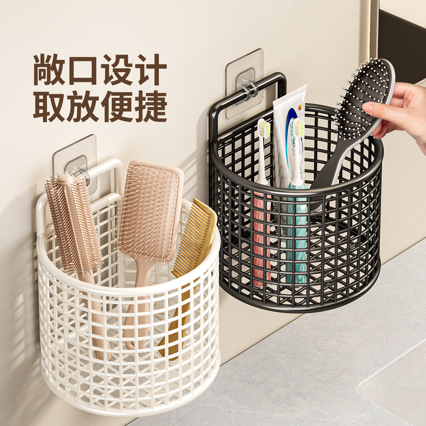 墙上收纳神器牙刷牙膏架 卫生间置物架梳子收纳筒浴室洗漱台壁挂式由