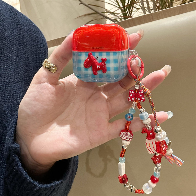 为您提供商品新年耳机壳红马适用于华为freeclip2保护套蓝色格子freeclip2耳机保护套防摔se3软壳6i波浪边红色小马SE外壳的详细介绍,