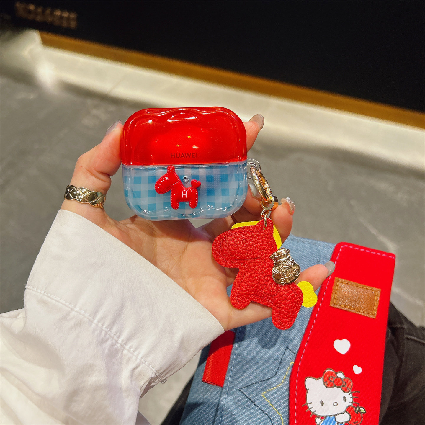 新年耳机壳红马适用于华为freeclip2保护套蓝色格子freeclip2耳机保护套防摔se3软壳6i波浪边红色小马SE外壳
