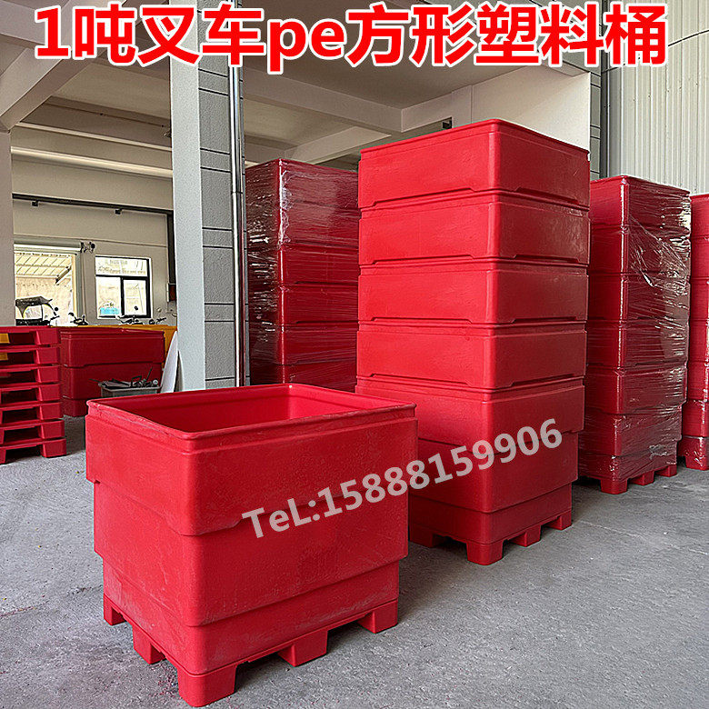 1吨废料箱塑料托盘叉车物流周转箱1吨食品级塑料方形箱带盖物流箱由