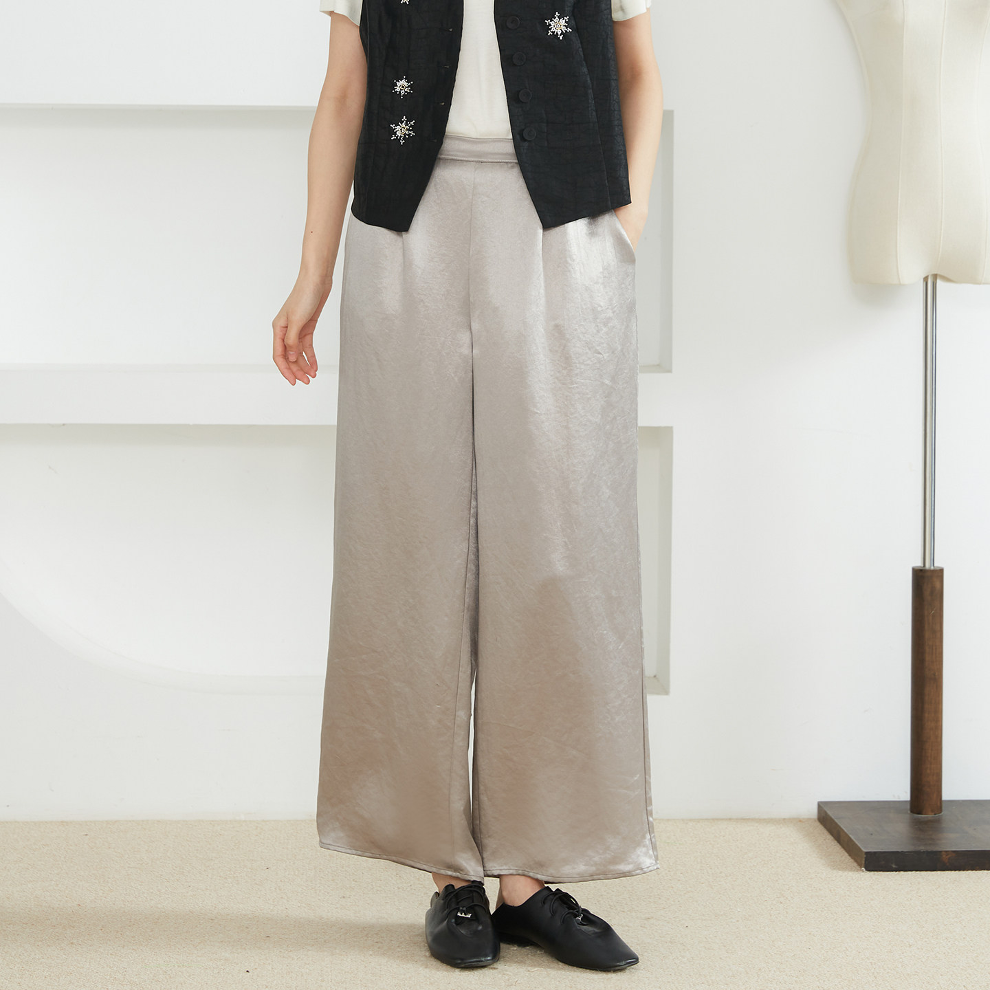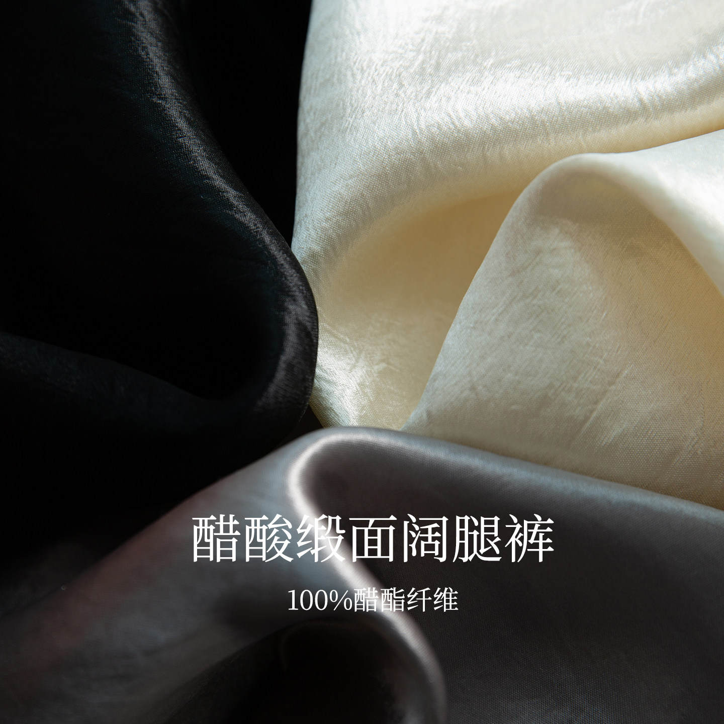 高腰休闲裤 高定 高克重醋酸缎面阔腿裤 女双面缎半松紧直筒裤 长裤由