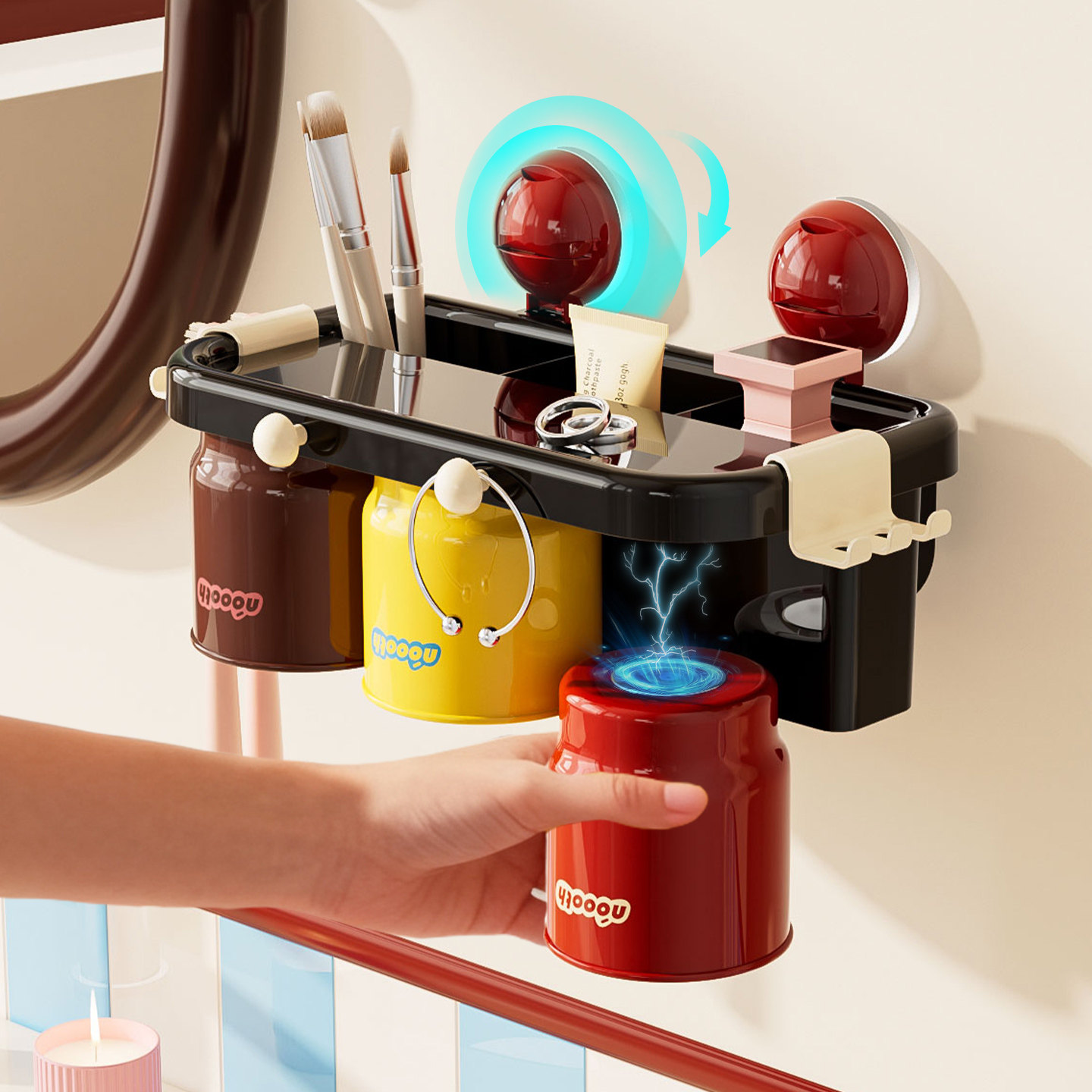 卫生间牙杯电动挂牙刷架子漱口杯 诺室吸盘牙刷置物架免打孔壁挂式
