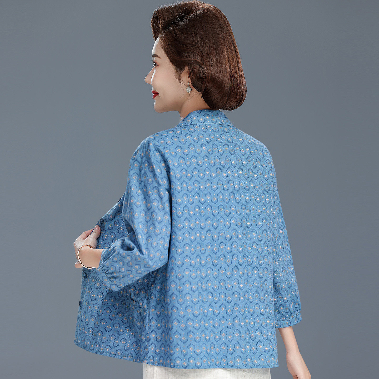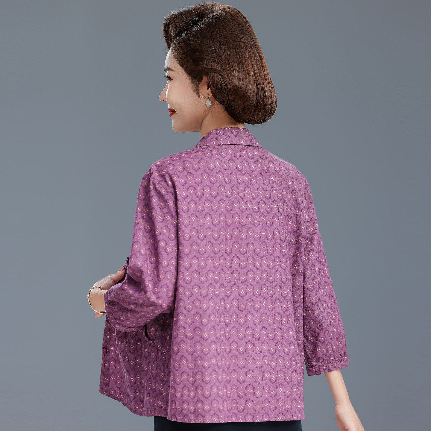 七分袖 纯棉老太太衣服洋气宽松全棉 女妈妈印花衬衫 中老年春夏装