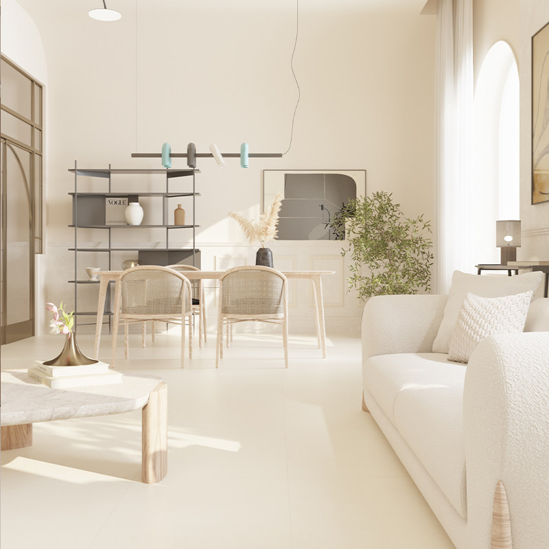 客厅卫生间咖色瓷砖800 天鹅绒柔光超白胚肌肤釉奶油白微水泥地砖