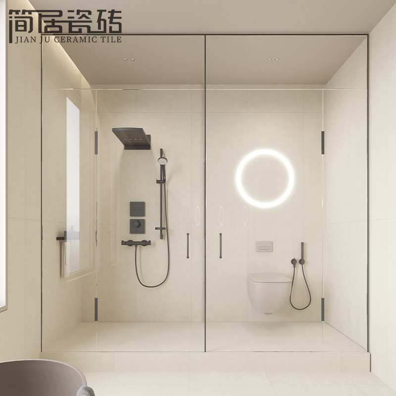 6001200 现代侘寂奶油色微水泥瓷砖柔光卫生间墙面地面瓷砖300600