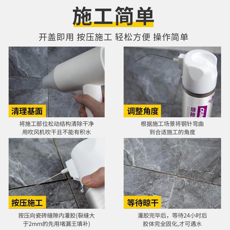 卫生间防水补漏材料透明免水性填缝胶砖涂料王砸缝隙堵瓷砖渗透剂由