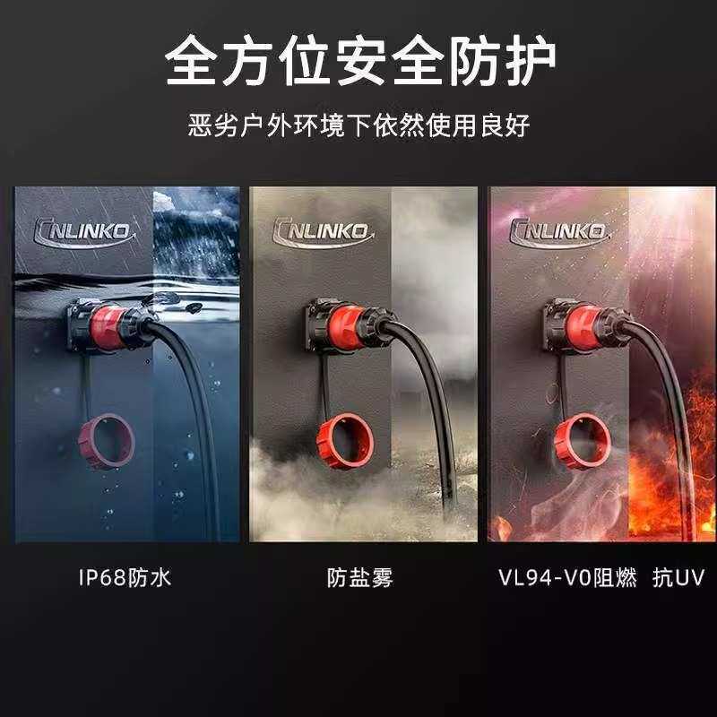 凌科YM24公母对接插头3芯户外路灯太阳能IP68防水防腐工业连接器由