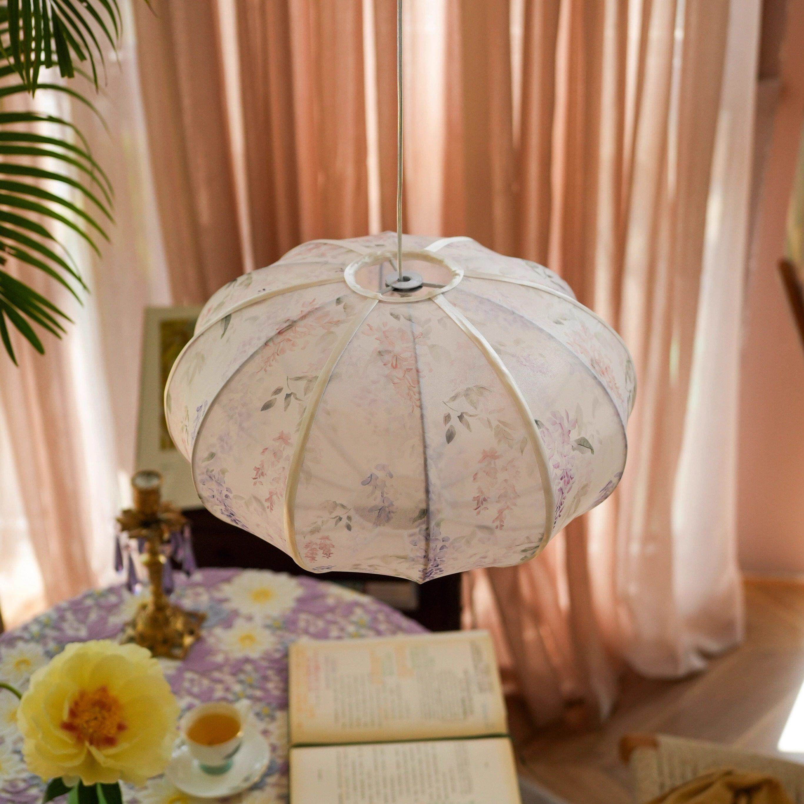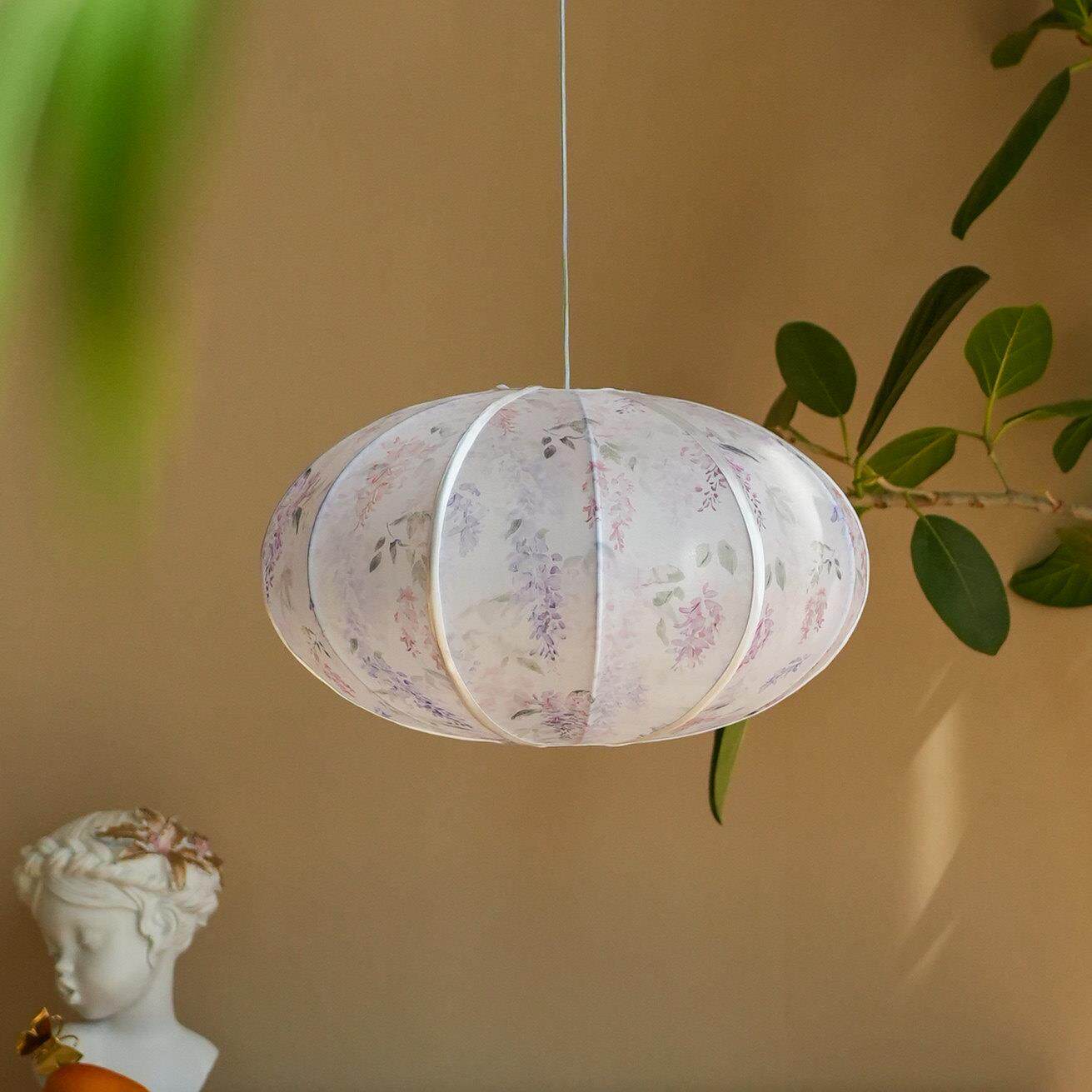 美学紫藤鼓型灯笼简约布艺书房卧室茶室少女房吊灯 物几空间新中式