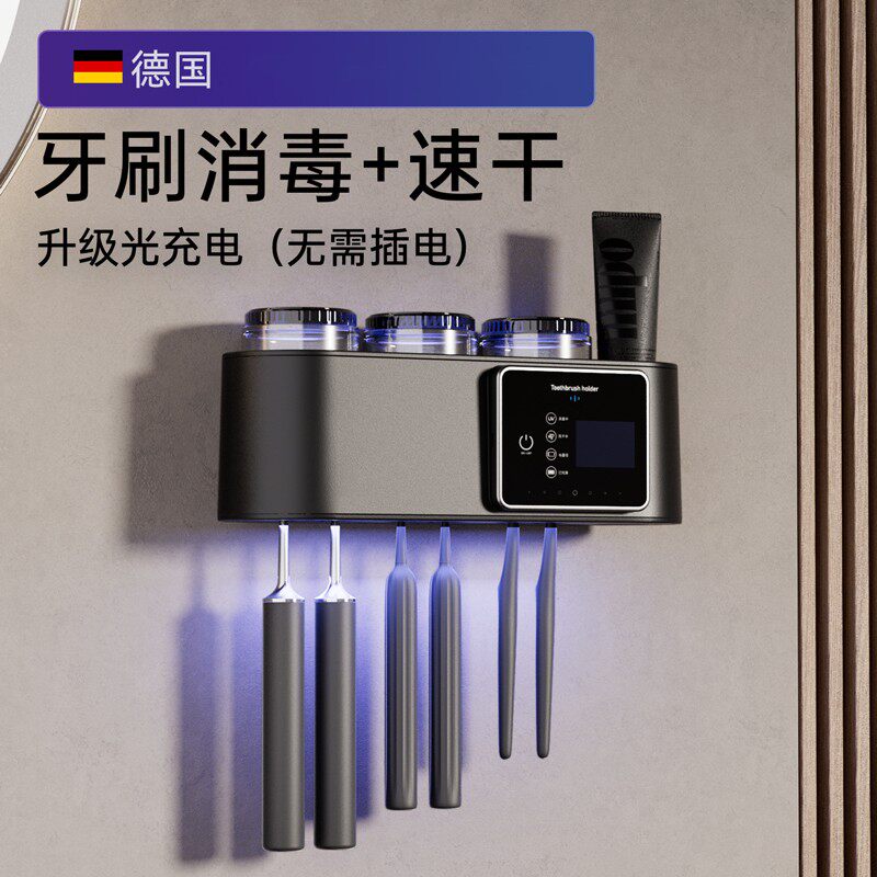 德国智能牙刷消毒器紫外线杀菌烘干仓电动卫生间置物架免打孔壁挂
