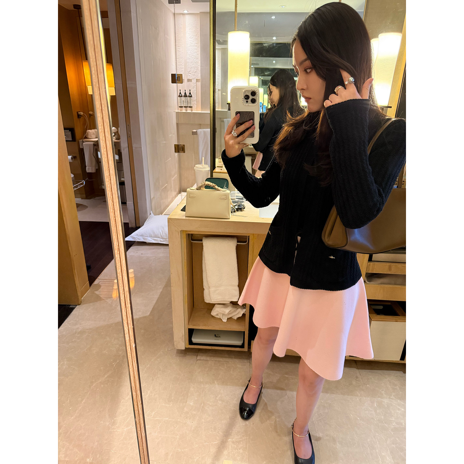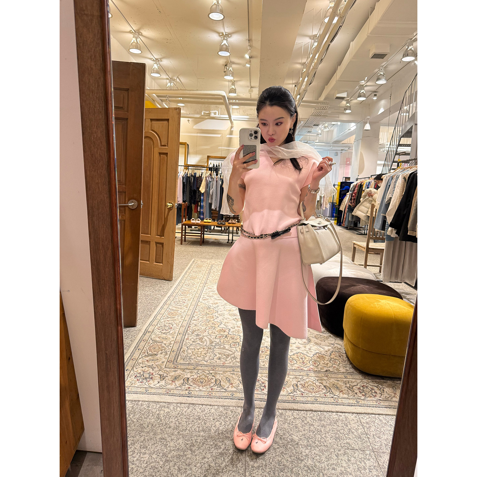 粉色针织气质半袖 DUO智仙生 粉标 千金玫瑰 和波浪半裙套装