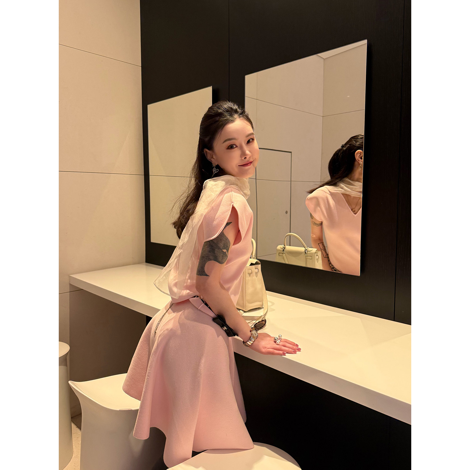 粉色针织气质半袖 DUO智仙生 粉标 千金玫瑰 和波浪半裙套装由