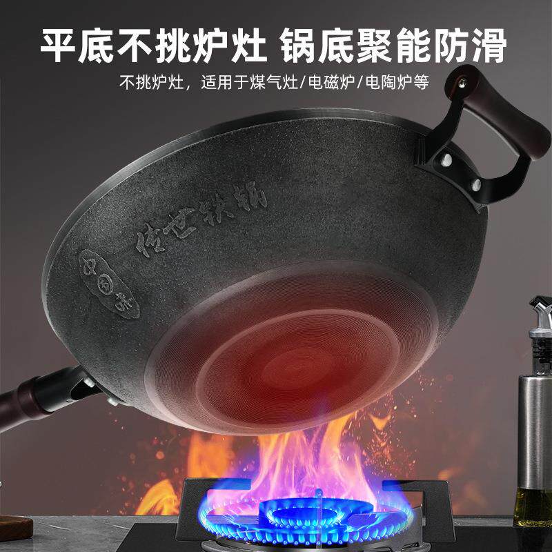 铸铁锅平底电磁炉专用炒菜锅 陆川铁锅炒锅家用加厚锅底无涂层老式由