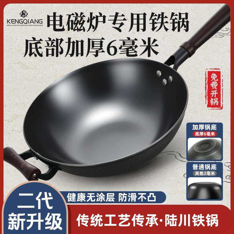 为您提供商品铸铁锅平底电磁炉专用炒菜锅 陆川铁锅炒锅家用加厚锅底无涂层老式的详细介绍,