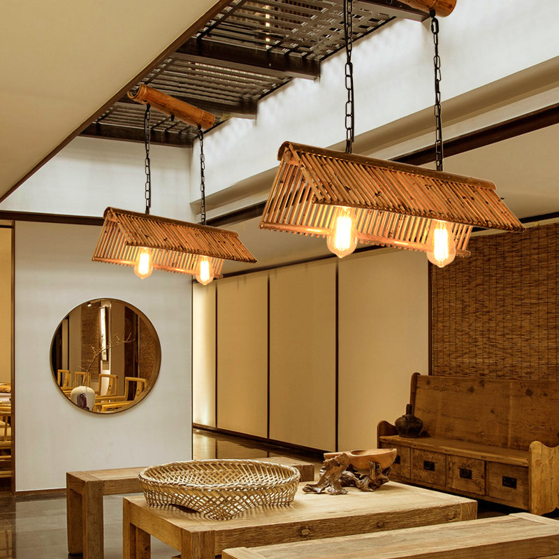 茶室长形灯民宿原生态竹艺灯具创意餐厅竹灯 东南亚竹编吊灯中式由