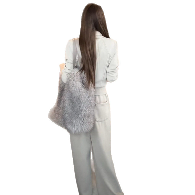 为您提供商品2026超火酷飒冰川灰套装 两件套 女春秋减龄洋气阔腿裤的详细介绍,