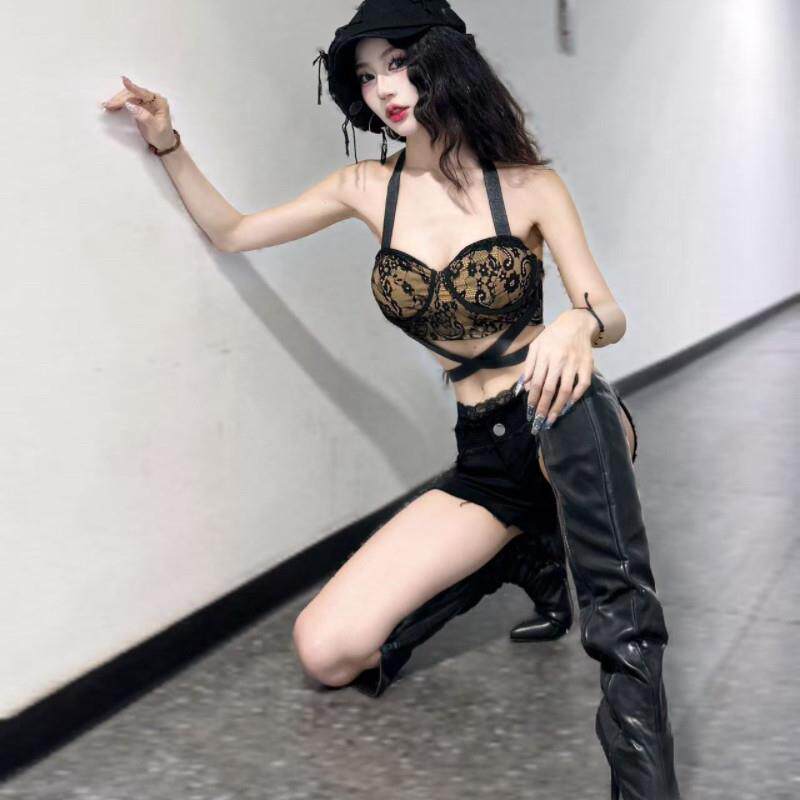酒吧DS演出服女DJ领舞台chic性感辣妹白色蕾丝挂颈吊带爵士舞套装由