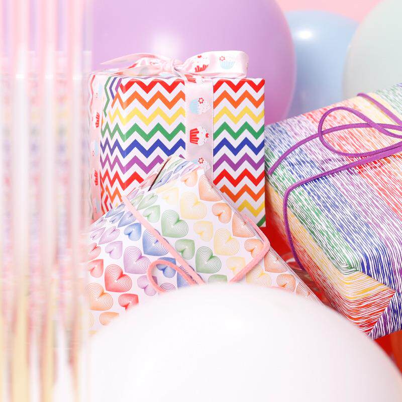 亚马逊七彩条纹派对礼品包装 饰白牛皮纸 纸生日婚庆布置礼物派对装