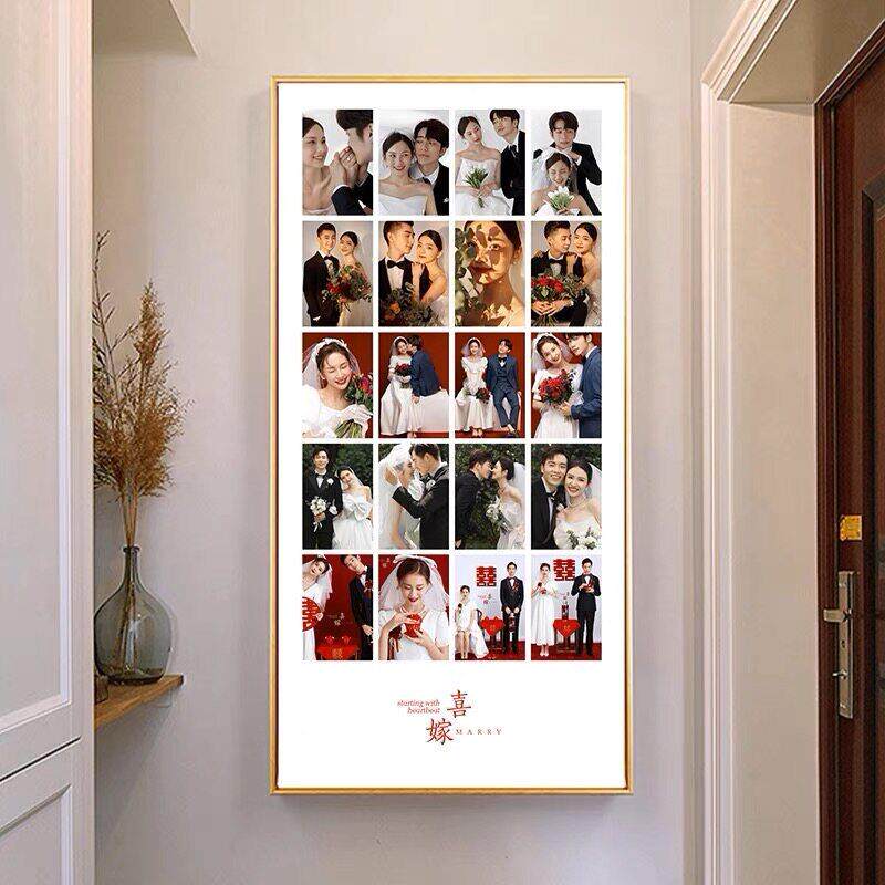 多宫格婚纱照相框放大挂墙照相馆高端结婚洗照片精修定制玄关画由