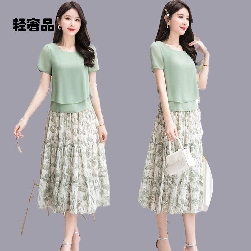 高级感洋气套装 裙子两件套 新款 朗姿约定碎花雪纺连衣裙女2025夏季由